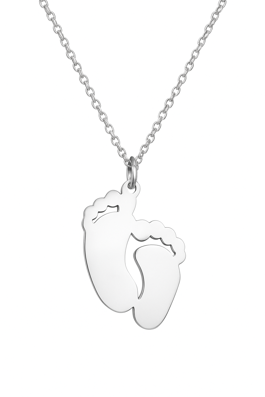 • Colgante en forma de dos huellitas, de acabado liso y pulido, con la posibilidad de grabar nombres, convirtiéndolo en una joya única y profundamente personal.