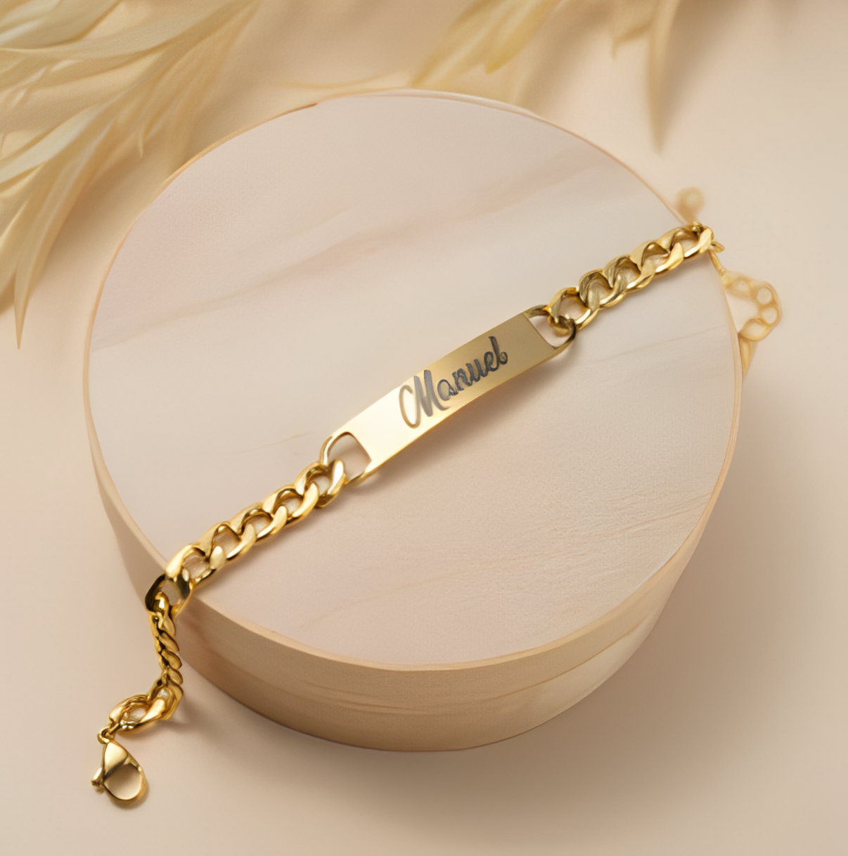 • Pulsera personalizable de oro de 18 K, resistente al agua, al sudor y al uso diario, diseñada para conservar su brillo y color con el tiempo.