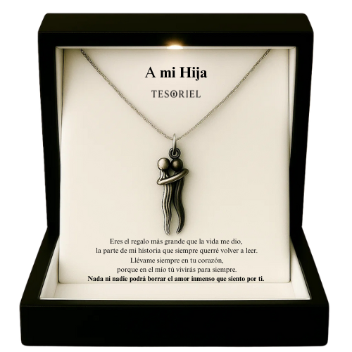 Colgante Abrazo Eterno Plata-Negro Para Mi Hija (Con Carta Dedicatoria a Escoger)