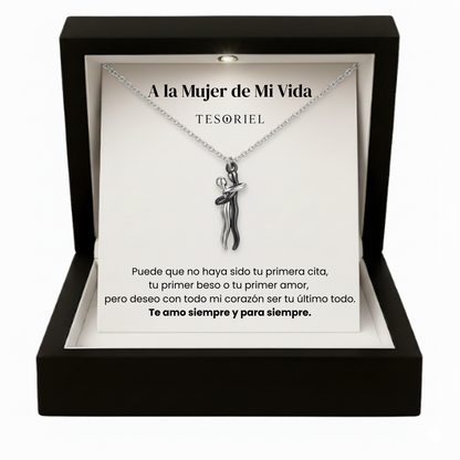Colgante Abrazo Eterno Plata-Negro Para Mi Mujer/Novia (Con Carta Dedicatoria a Escoger)