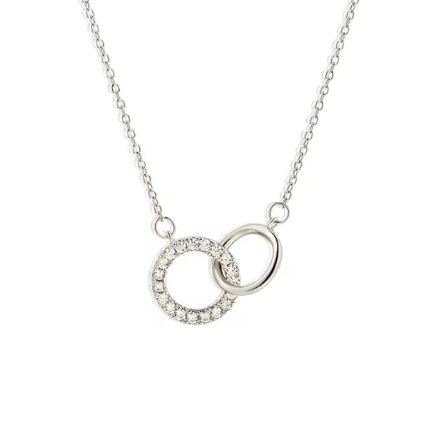 • Diseño con dos aros entrelazados: uno con circonitas cúbicas brillantes y otro de acabado liso, símbolo de unión y amor eterno.