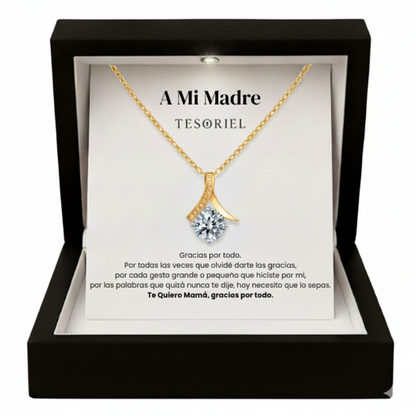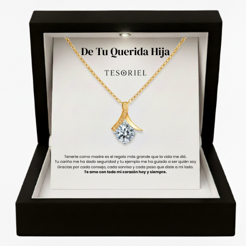 Emociónala con nuestro collar Flor del Alma, presentado en una elegante caja iluminada y acompañado de una nota dedicada que podrás elegir para transmitir tu mensaje más especial.