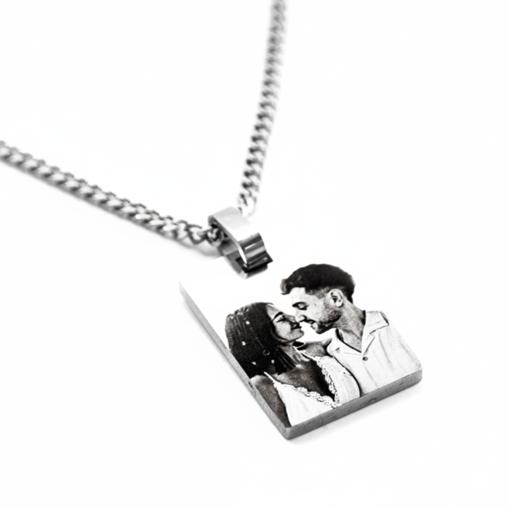 Convierte un recuerdo en una joya eterna. Solo necesitas enviarnos una foto clara y nosotros la adaptaremos con precisión para grabarla en un colgante único y lleno de significado, diseñado para que lleves siempre contigo lo que más amas.