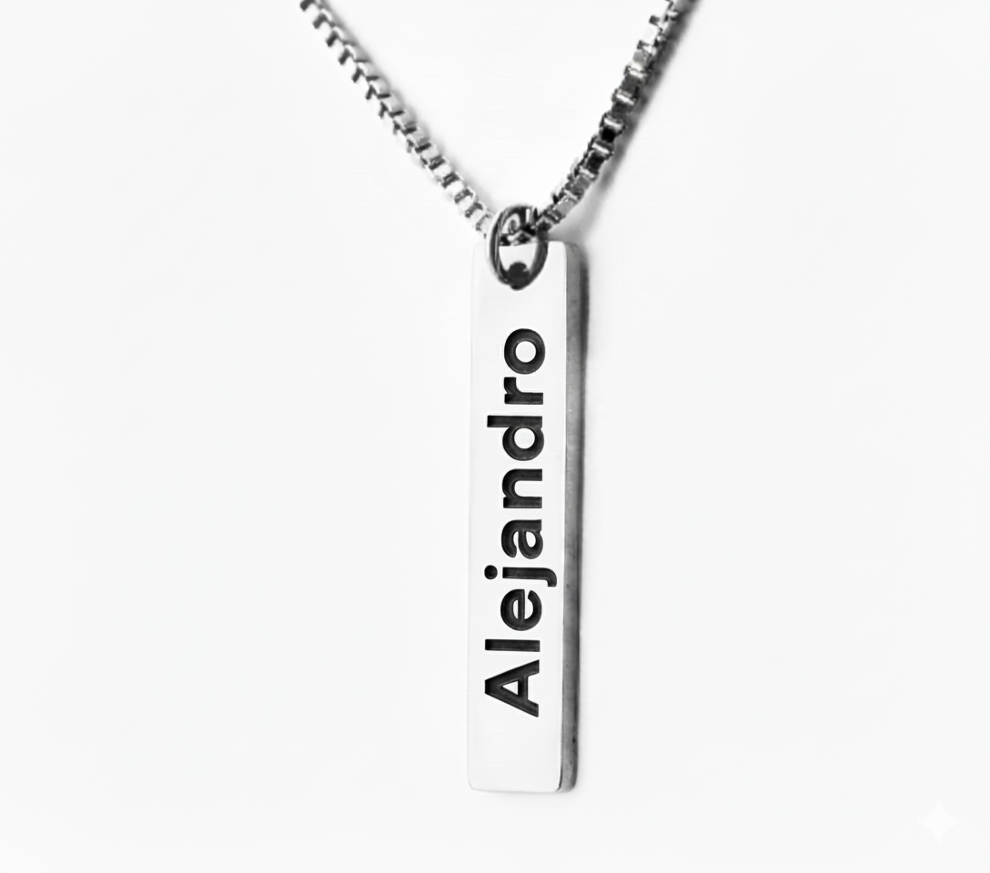 Convierte un sentimiento en una joya única. Elige ese nombre que llevas en el corazón y nosotros lo grabaremos con precisión, creando un colgante exclusivo y lleno de significado, diseñado para acompañarte siempre.