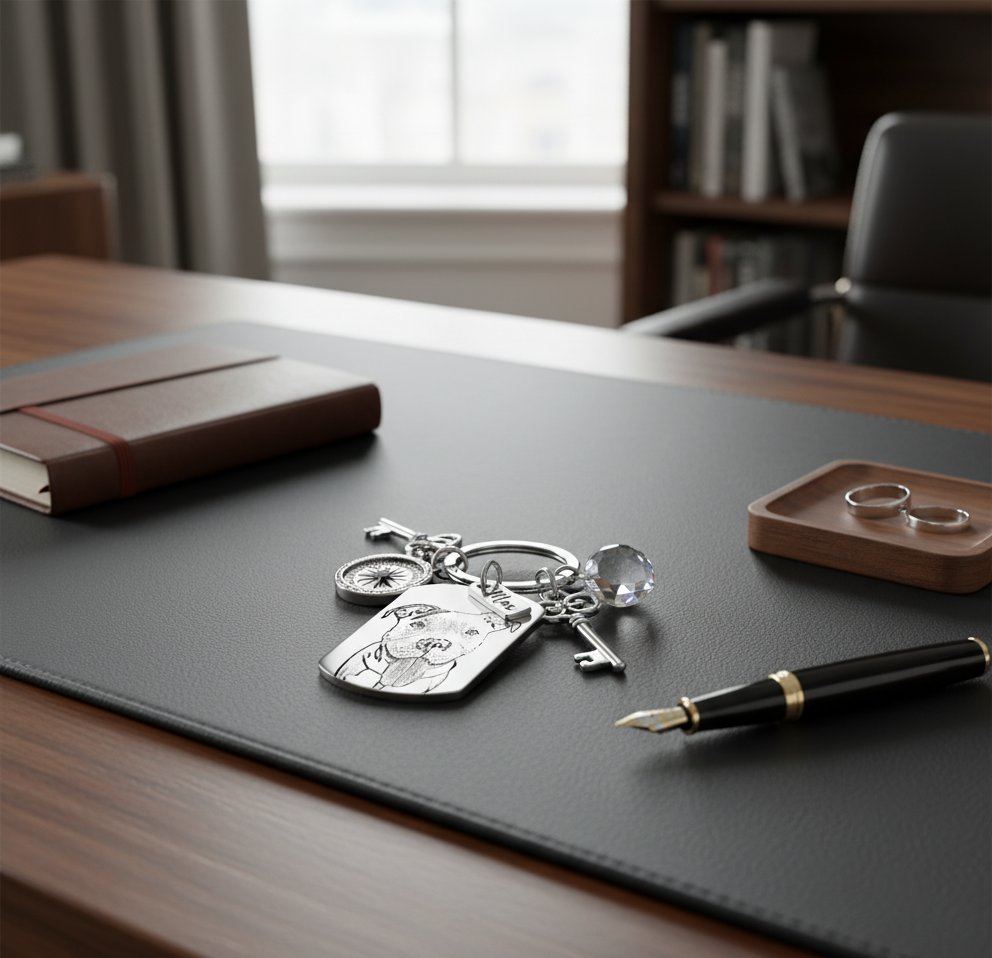 Un llavero personalizable y atemporal, diseñado para honrar el vínculo incondicional con tu perro y convertirlo en un detalle inolvidable que te acompañará a todas partes.